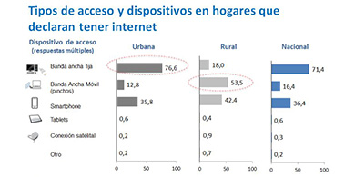 La encuesta de Subtel confirmó además un incremento sostenido de las conexiones móviles en Chile. En los hogares de espacios urbanos, un 12,8 por ciento de los usuarios de Internet tiene banda ancha móvil y un 35, 8 por ciento posee un smartphone. En el ámbito rural, el 53,5 por ciento de los hogares tiene banda ancha móvil y un 42,4 por ciento dispone de un teléfono inteligente para conectarse.