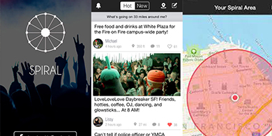 Spiral es un servicio que permite a los usuarios postear y ver las últimas novedades. La diferencia está en su enfoque de geolocalización: la red social muestra las noticias que literalmente rodean al usuario.